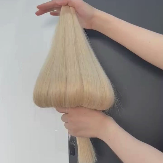 Flat Tip Keratin Extensions i färgen Luxury 613N är en ljus, krämig blond nyans med en mjuk gyllene underton – perfekt för dig som vill ha ett fräscht och naturligt resultat utan kalla eller grå inslag. Den här nyansen ger en klassisk blond look som smälter in vackert i ljust eller blekt hår.