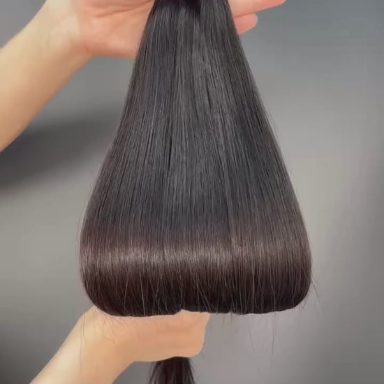 Flat Tip Keratin Extensions i färgen #1B Naturlig Svartbrun erbjuder en elegant och fyllig hårförlängning med ett långvarigt resultat. Denna djupa, svartbruna nyans passar perfekt för dig med naturligt mörkt hår som önskar mer volym och längd utan färgskiftningar. Flat Tips fästs med värme och keratin, och den platta infästningen gör att håret ligger tätt mot hårbotten för en naturlig känsla och osynlig finish.
