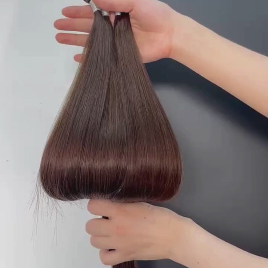 Ge ditt hår ett djup och en elegant fyllighet med våra Flat Tip Keratin Extensions i färg #4 Mörkbrun Choklad. Denna nyans har en varm, chokladbrun ton som passar perfekt för dig som vill ha en naturlig, klassisk brun look med glans och djup.