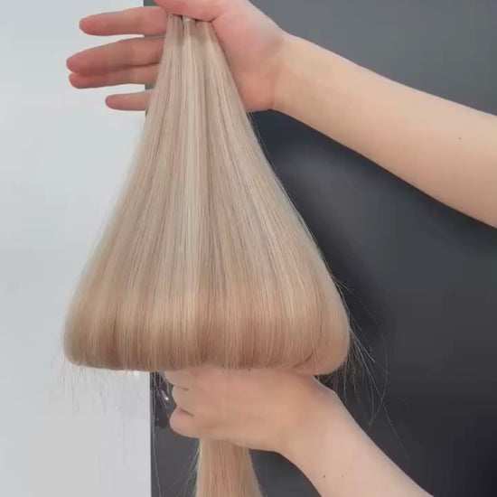 Få en mjuk och naturlig kall blond balayage-look med våra Flat Tip Keratin Extensions i färgen P18/60A. Denna nyans är perfekt för dig som vill ha en sval och elegant hårförlängning som smälter sömlöst in i skandinaviskt hår. Med diskreta keratinfästen och vår exklusiva luxurykvalitet får du ett hållbart och naturligt resultat som varar länge.